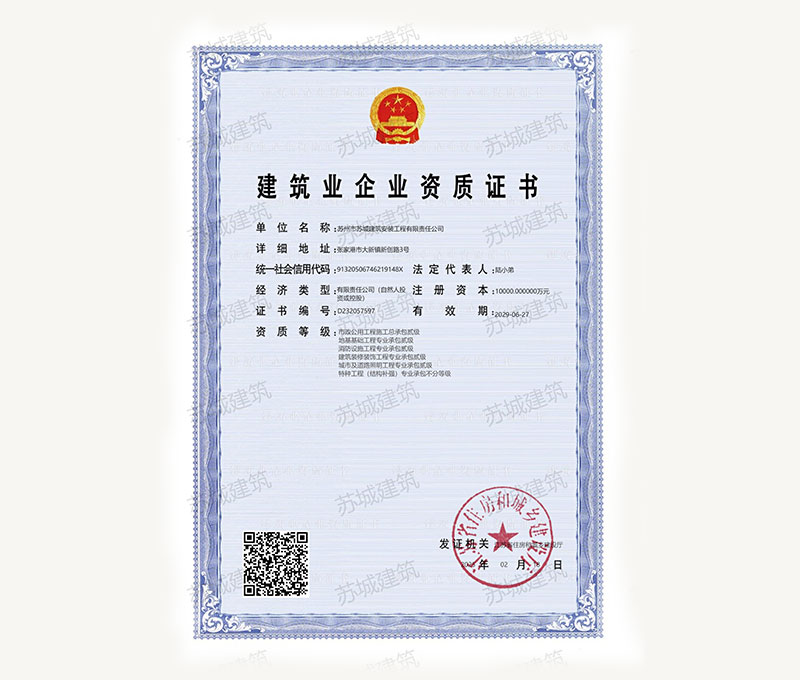 蘇州市蘇城建筑安裝工程有限責(zé)任公司,擁有主項(xiàng)建筑工程施工總承包一級(jí)資質(zhì),增項(xiàng)市政公用工程施工總承包二級(jí)資質(zhì)和建筑裝修